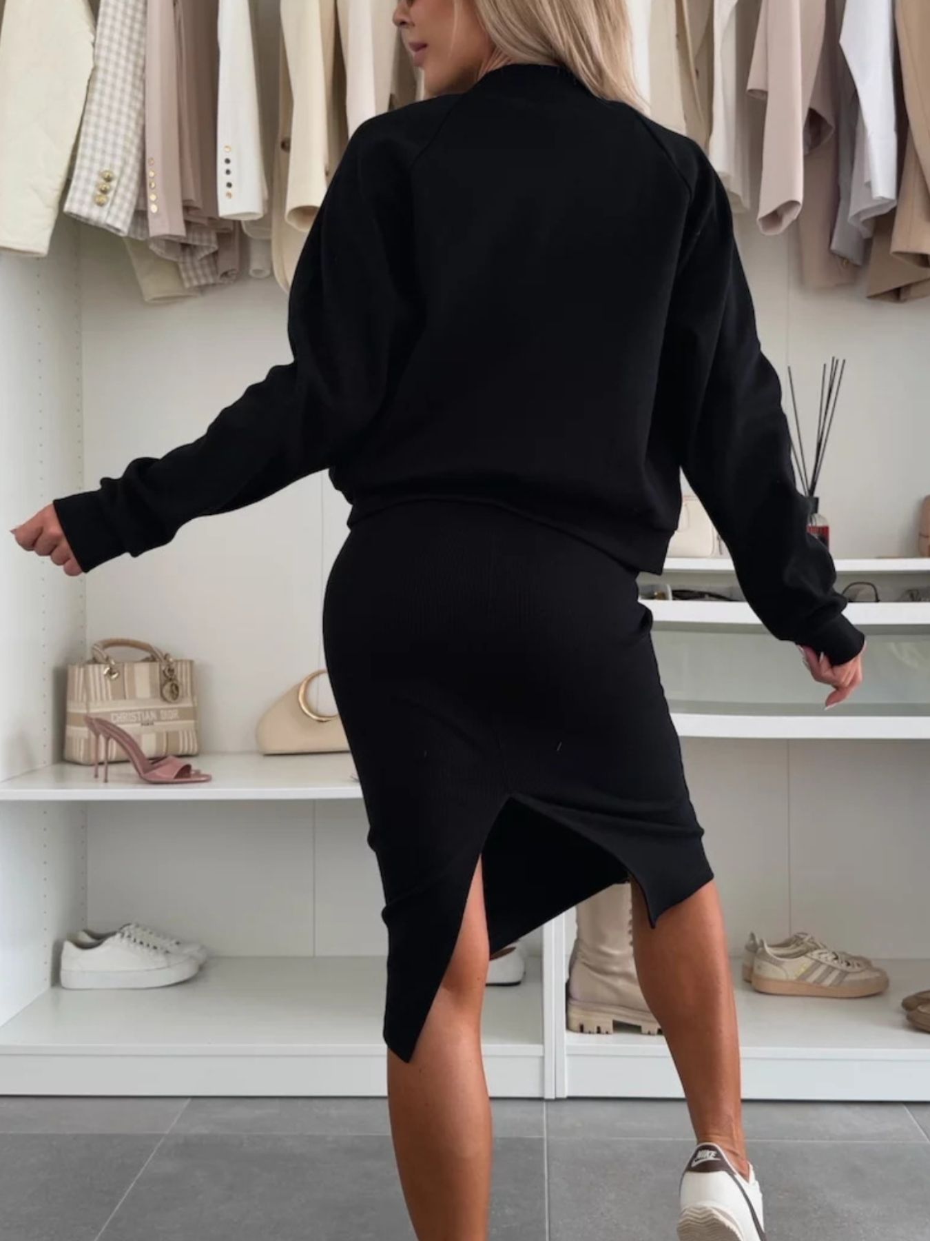 Full Size Slit Square Neck Dress and Outerwear Set Plus Size