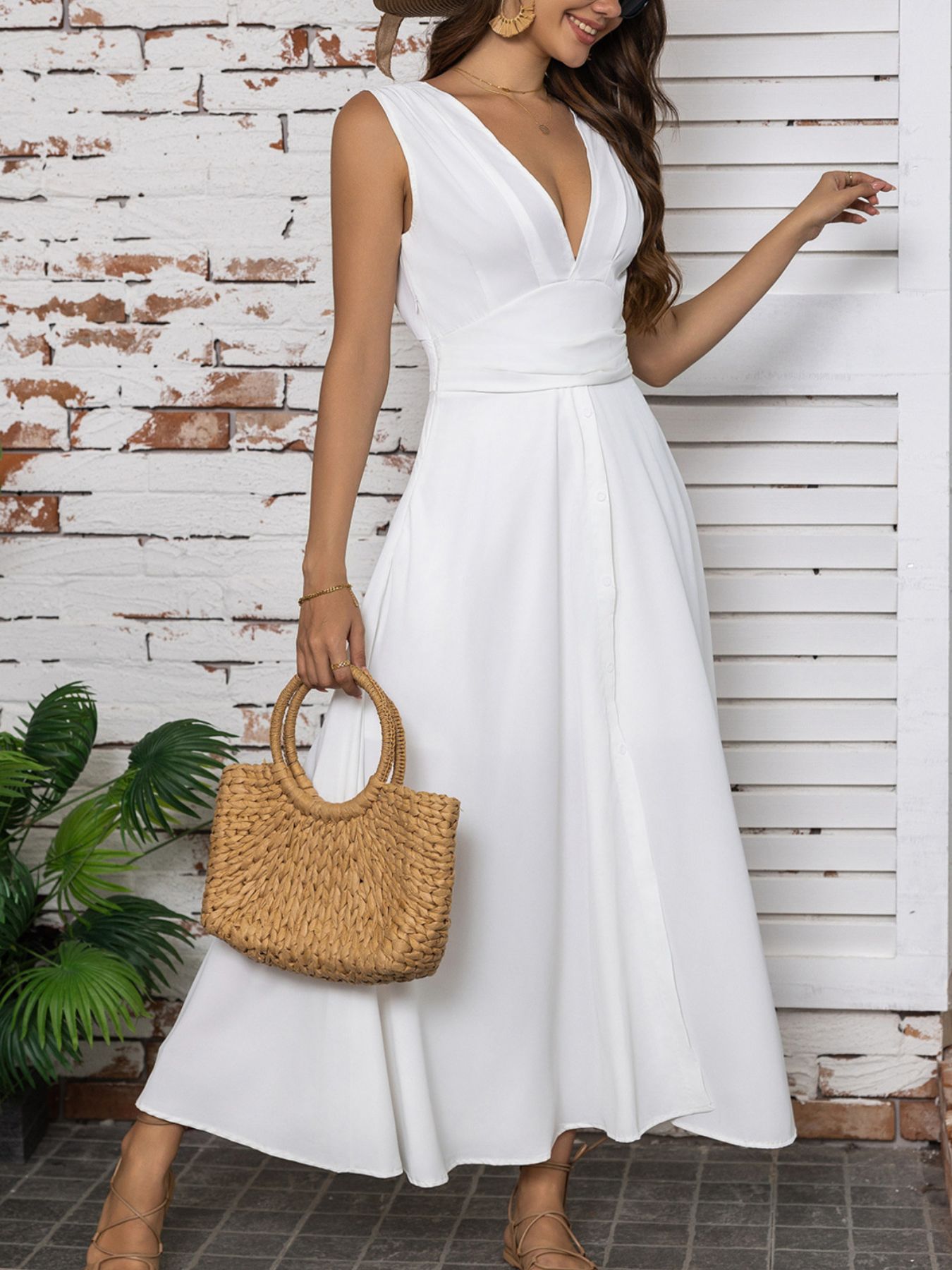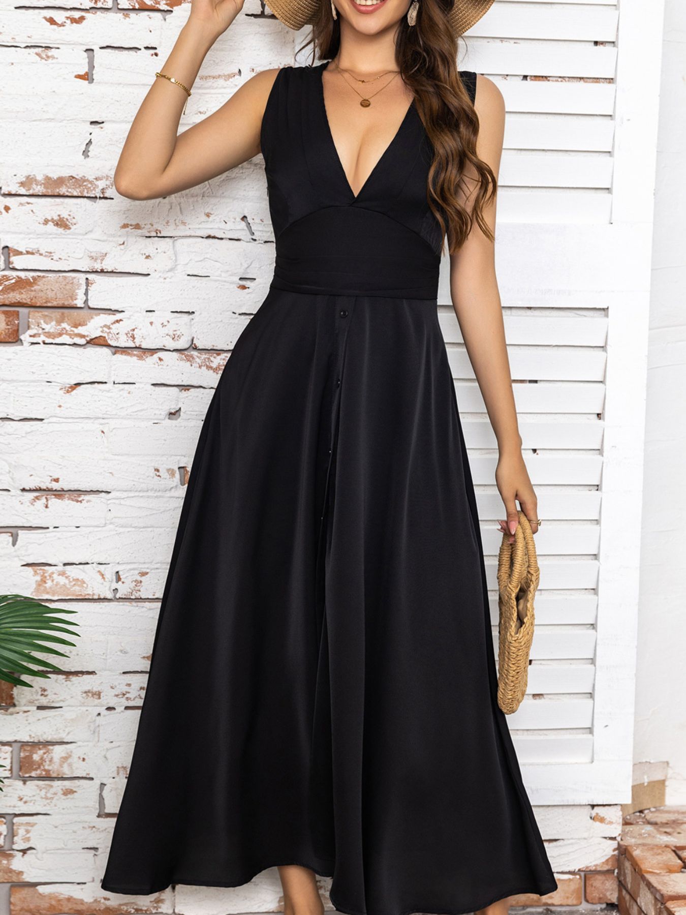 Full Size Slit V-Neck Sleeveless Dress Plus Size