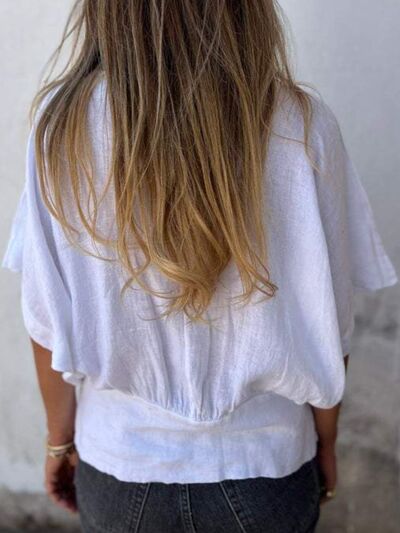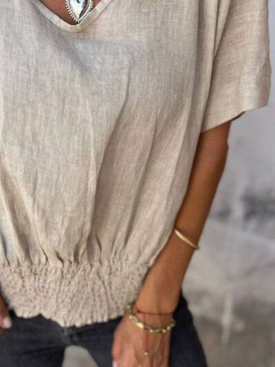 Full Size Smocked Hem V-Neck Relaxed Fit T-Shirt Plus Size
