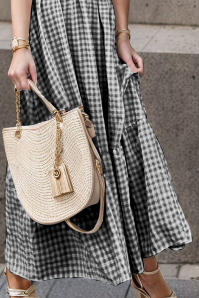Full Size Smocked Ruffled Plaid Ruffle Hem Dress