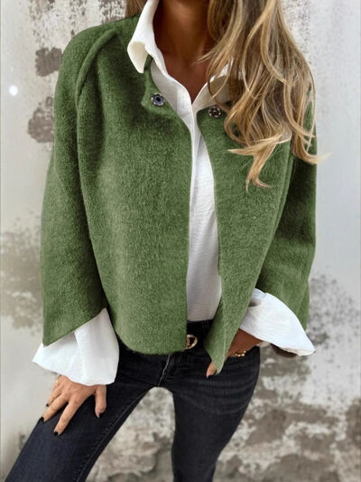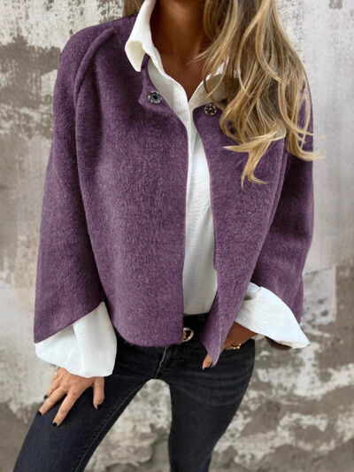 Full Size Solid Color Long Sleeve Outerwear Plus Size