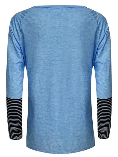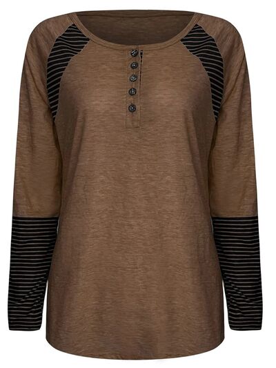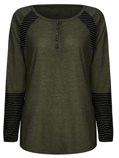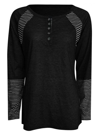 Full Size Striped Quarter Button Long Sleeve T-Shirt