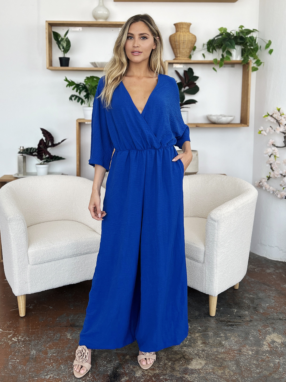 Full Size Surplice Wide Leg Jumpsuit with Pockets