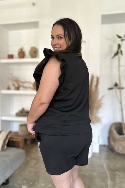 Full Size Texture Flounce Sleeve Top and Shorts Set