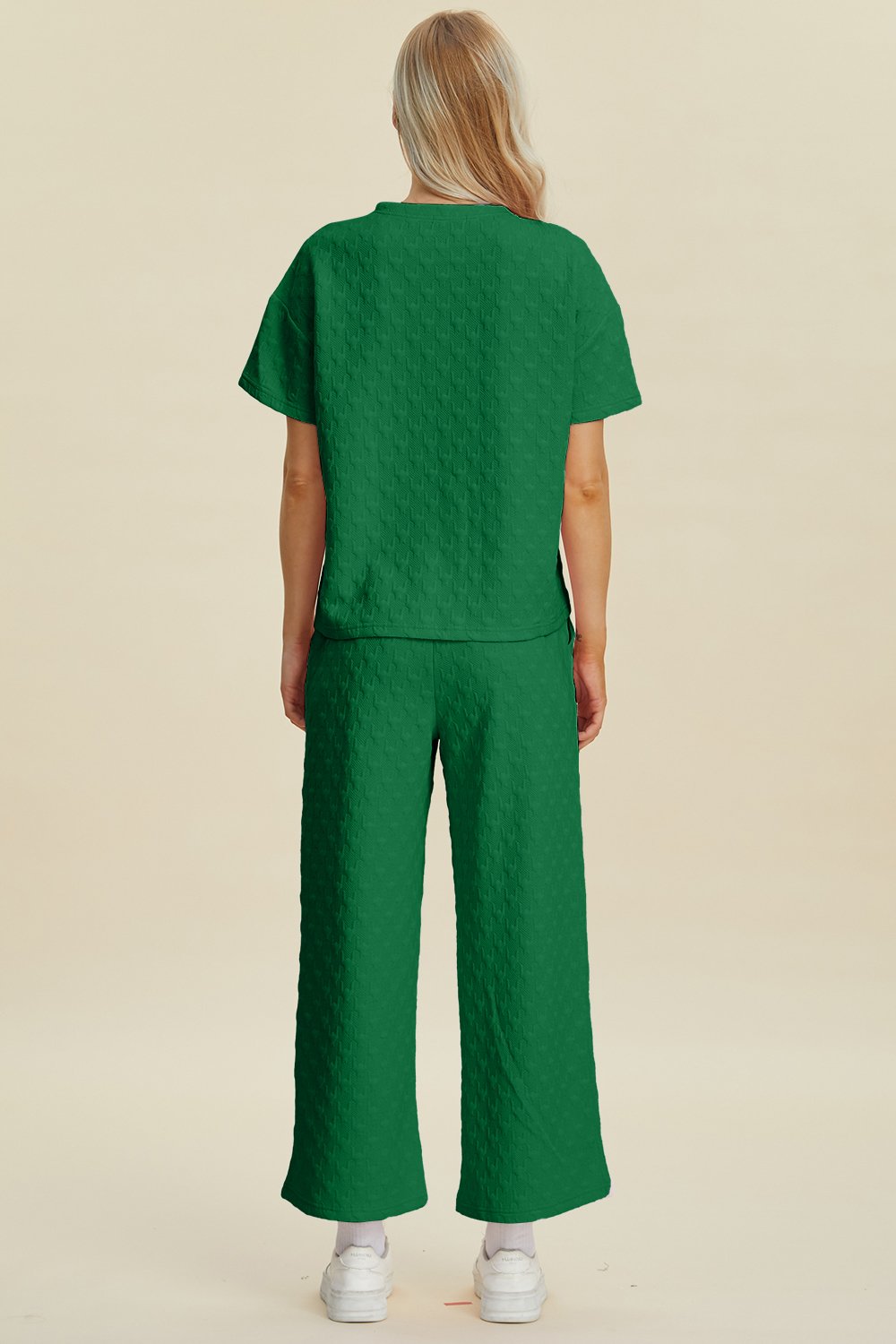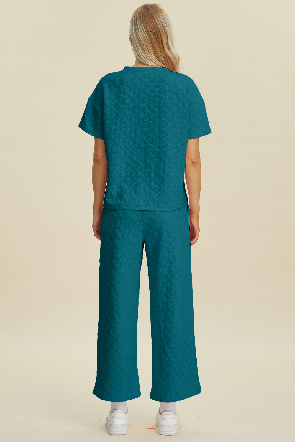 Full Size Texture Round Neck Short Sleeve Top and Pants Set