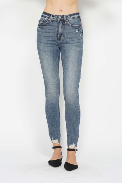 Full Size Tummy Control Vintage Wash Hem Destroy Skinny Jeans