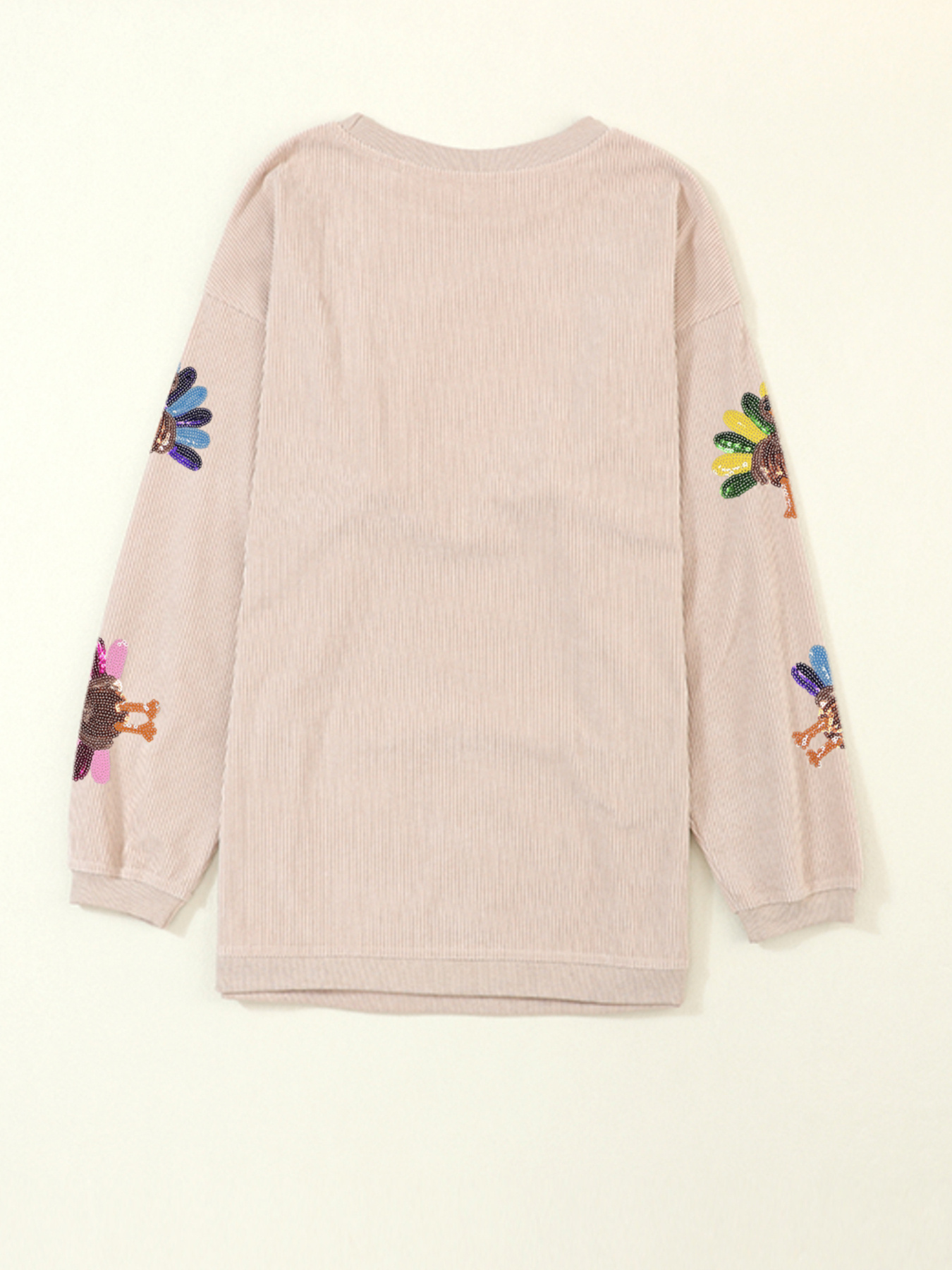 Full Size Turkey Graphic Corded Baggy Sweatshirt Plus Size