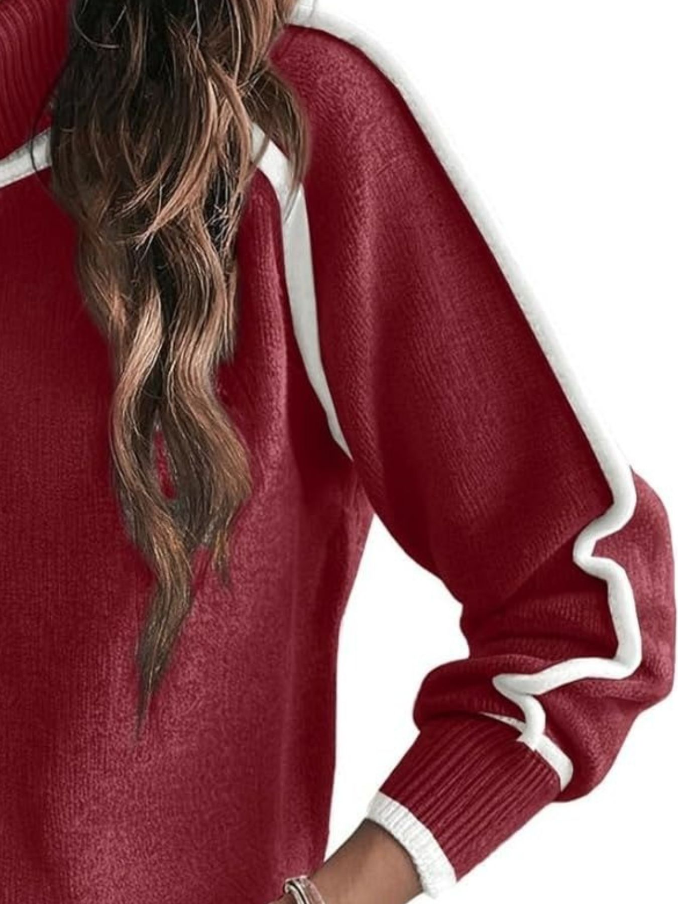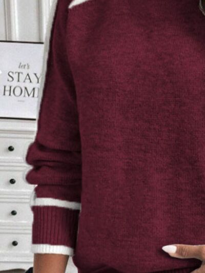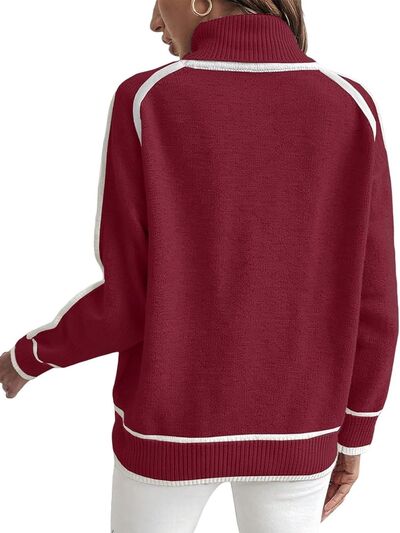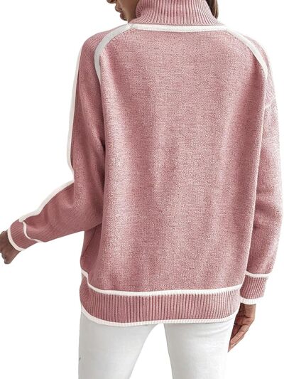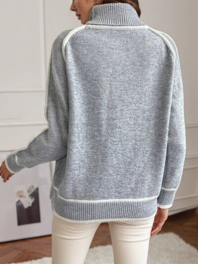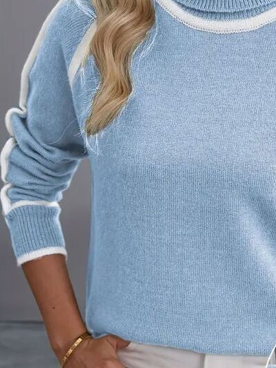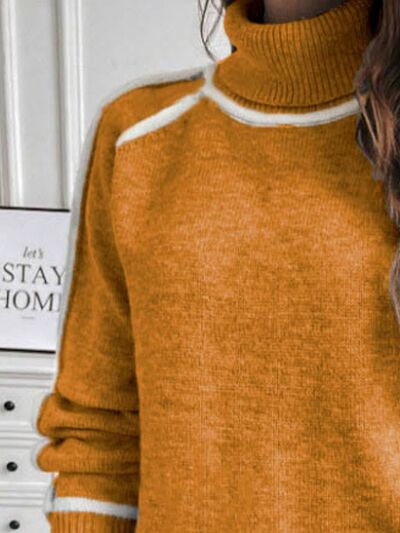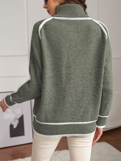 Full Size Turtleneck Contrast Trim Sweater Plus Size