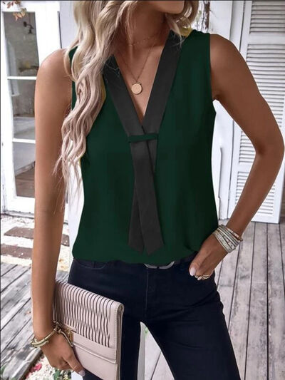 Full Size V-Neck Contrast Tank Plus Size