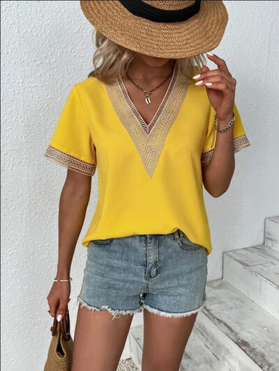 Full Size V-Neck Short Sleeve Blouse Plus Size