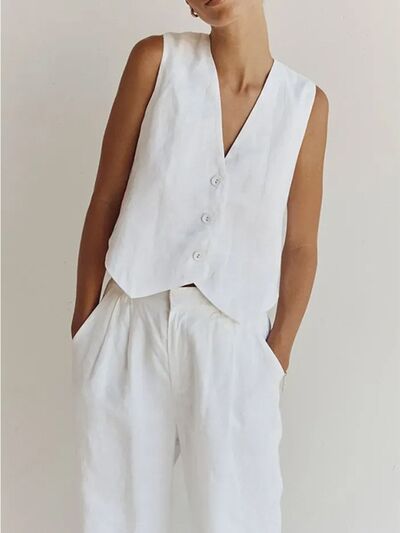 Full Size V-Neck Vest and Wide Leg Pants Set Plus Size