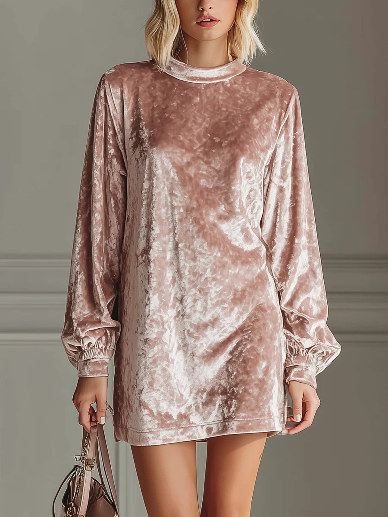 Full Size Velvet Long Sleeve Mini Dress Plus Size
