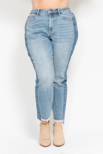 Full Size Vintage Wash Side Panel Detail with Fray Hem Slim Plus Size
