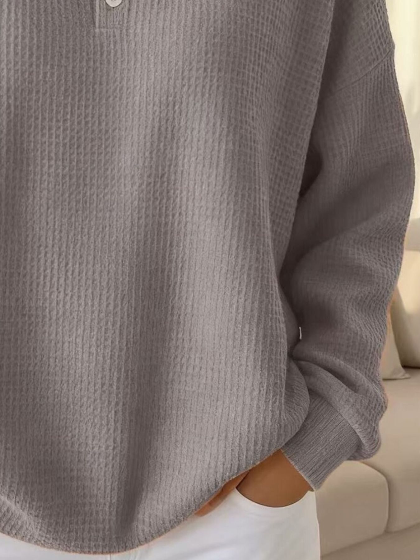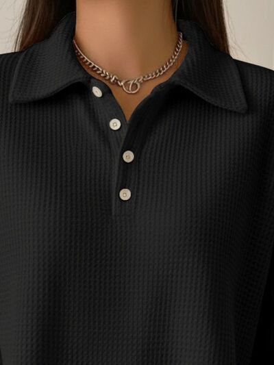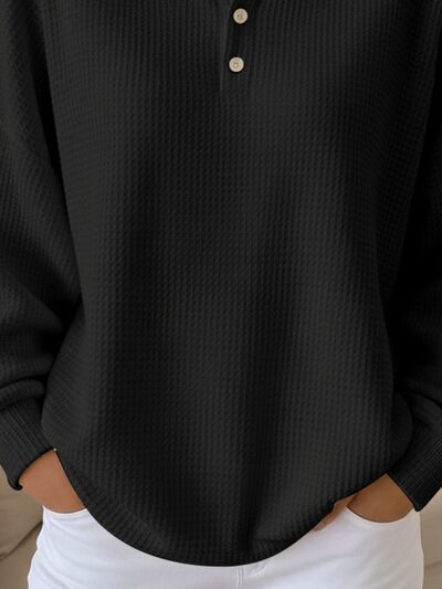 Full Size Waffle Knit Button Detail Sweatshirt Plus Size