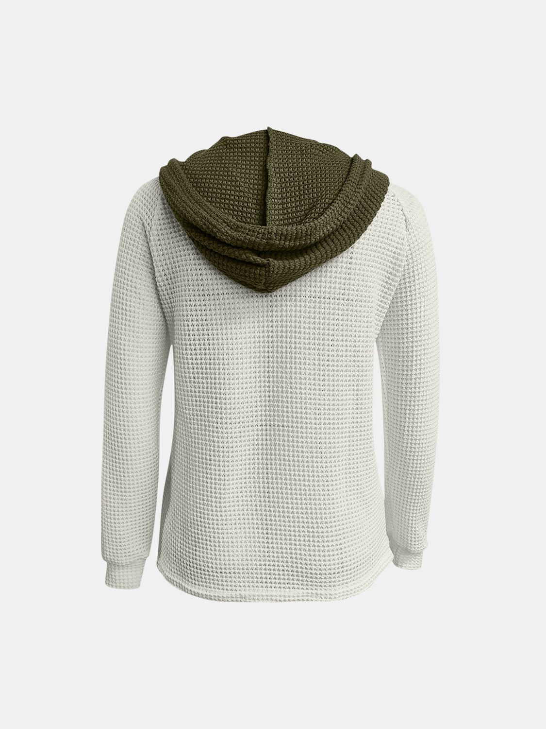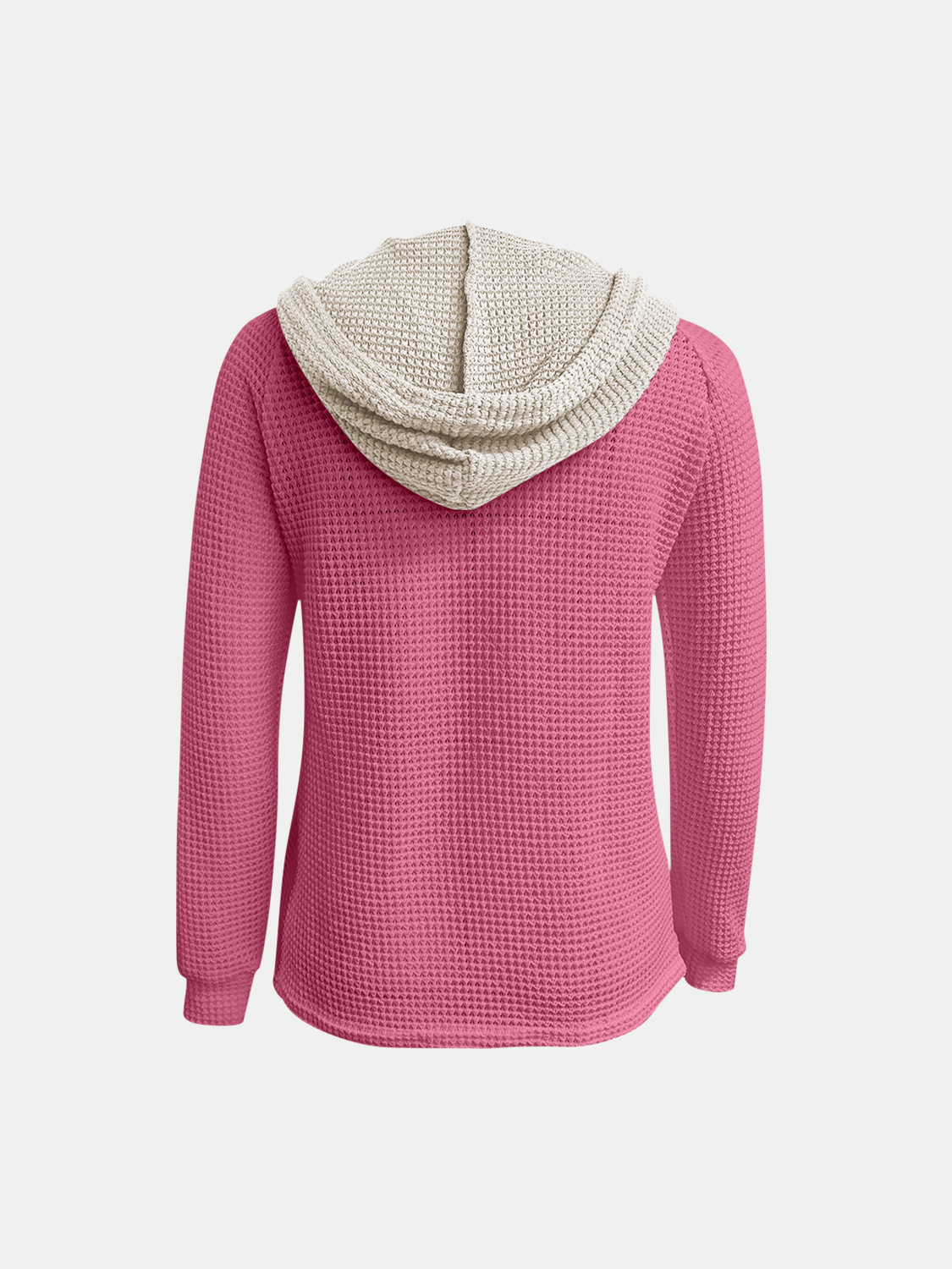 Full Size Waffle-Knit Contrast Long Sleeve Hoodie