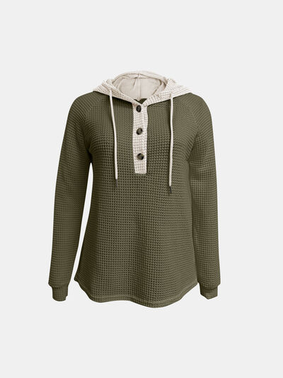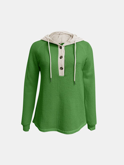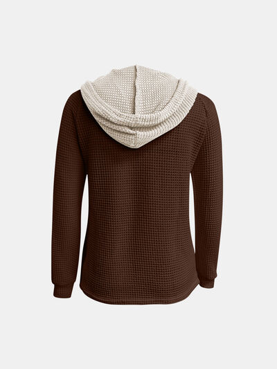 Full Size Waffle-Knit Contrast Long Sleeve Hoodie