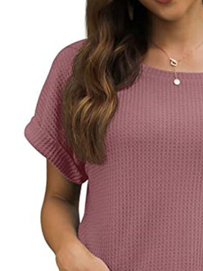 Full Size Waffle Knit Relaxed Fit T-Shirt Plus Size