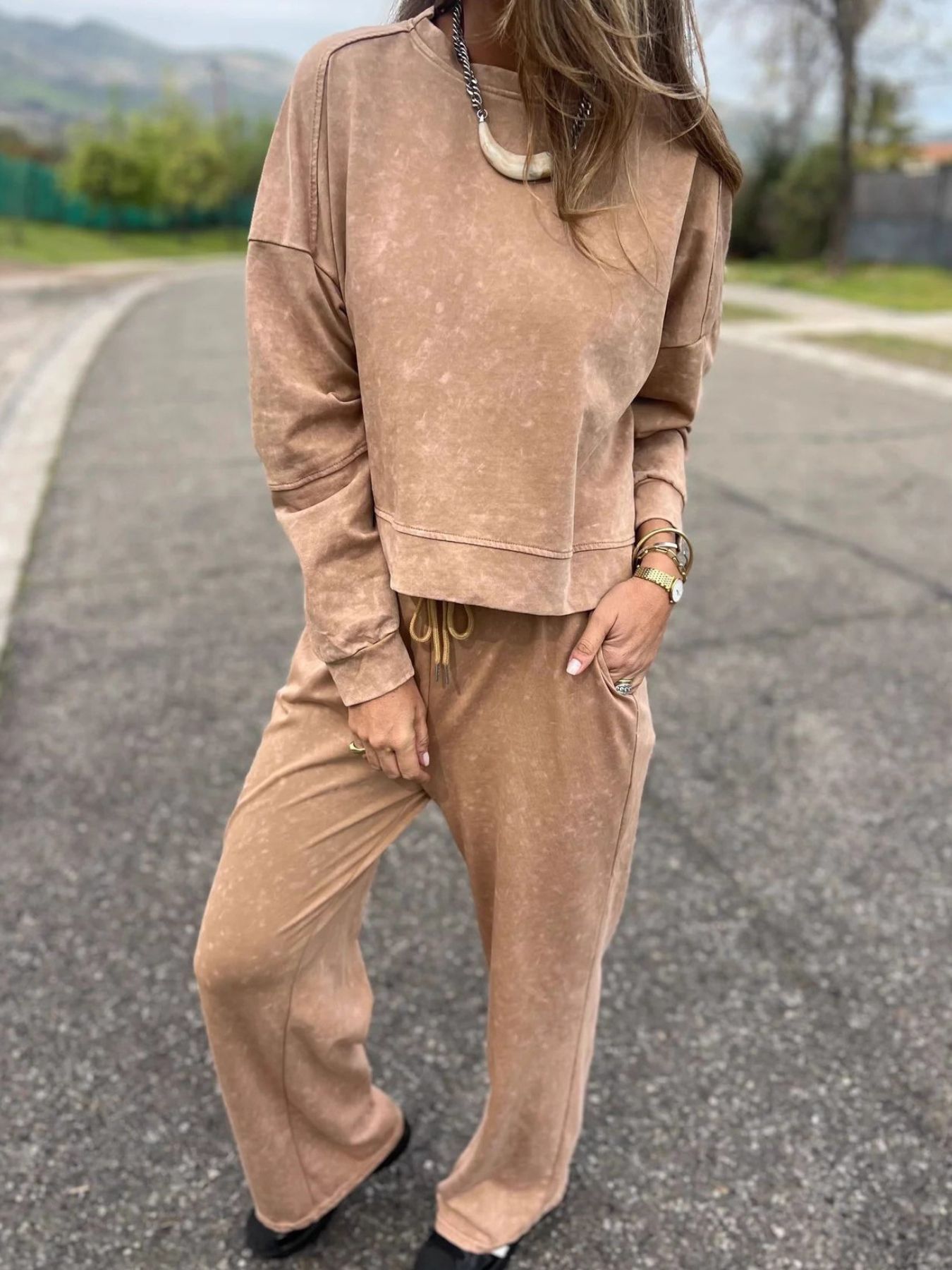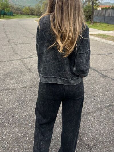 Full Size Washed Round Neck Top and Drawstring Pants Set Plus Size