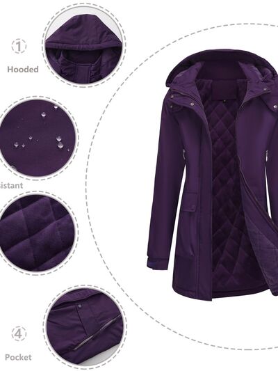 Full Size Zip Up Hooded Parka Outerwear Plus Size