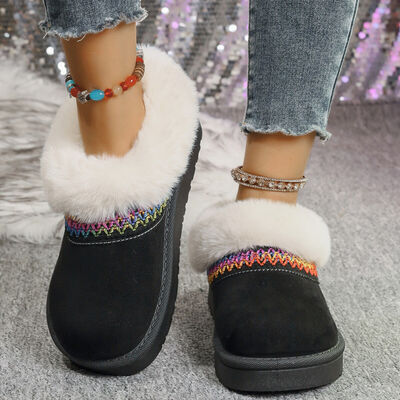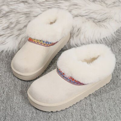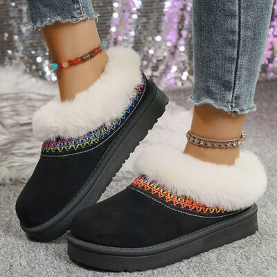 Fur-Lined Platform Boots with Decorative Woven Strap