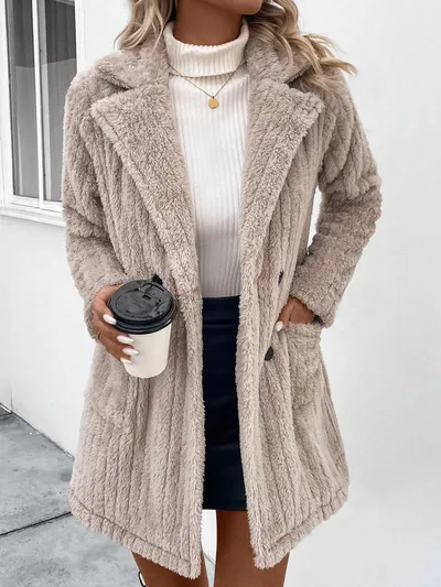 Fuzzy Button Up Long Sleeve Coat with Pockets