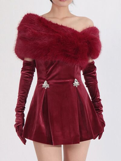 Fuzzy Off Shoulder Mini Dress