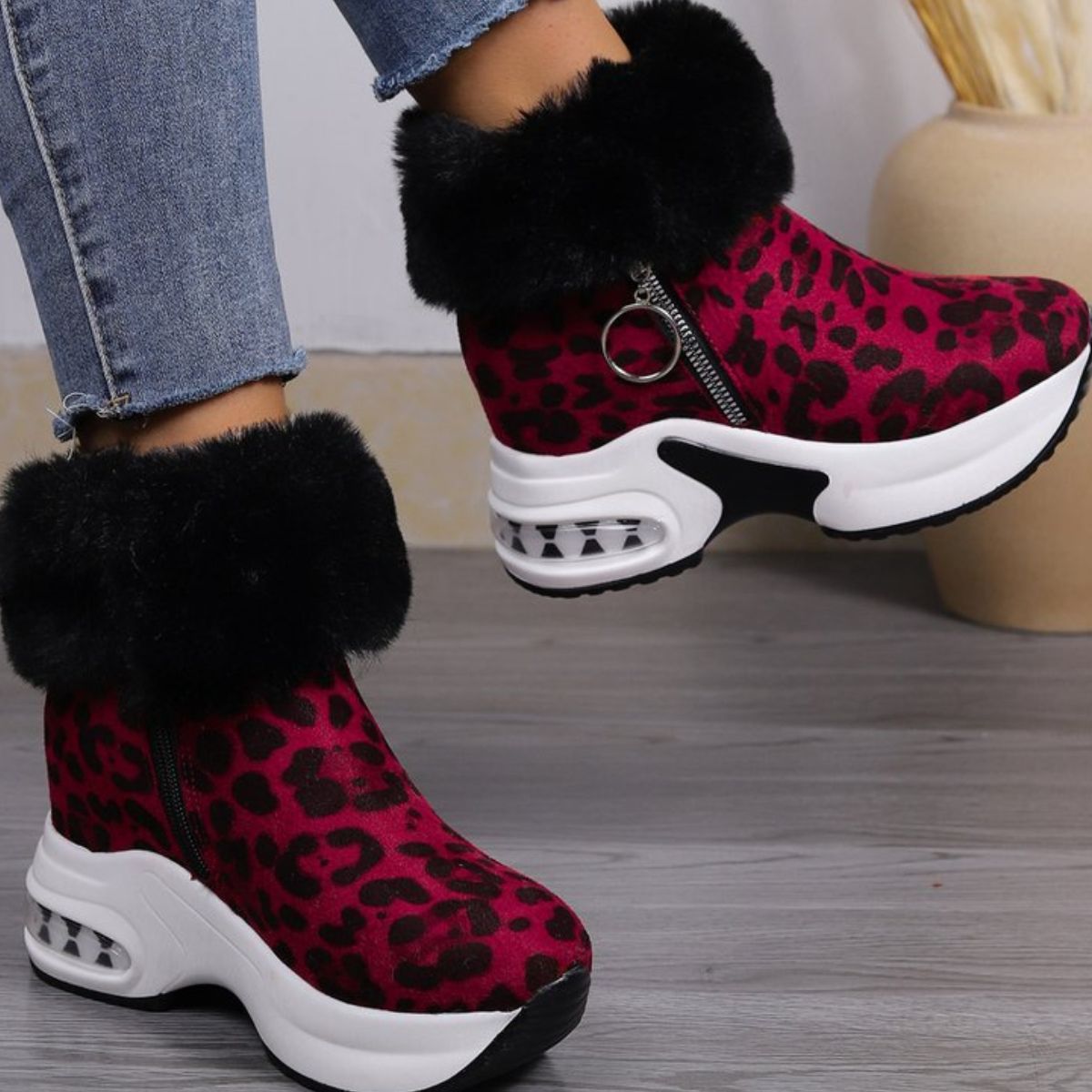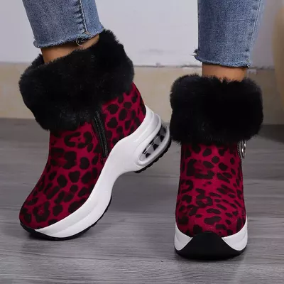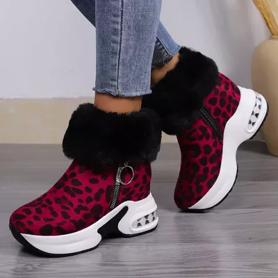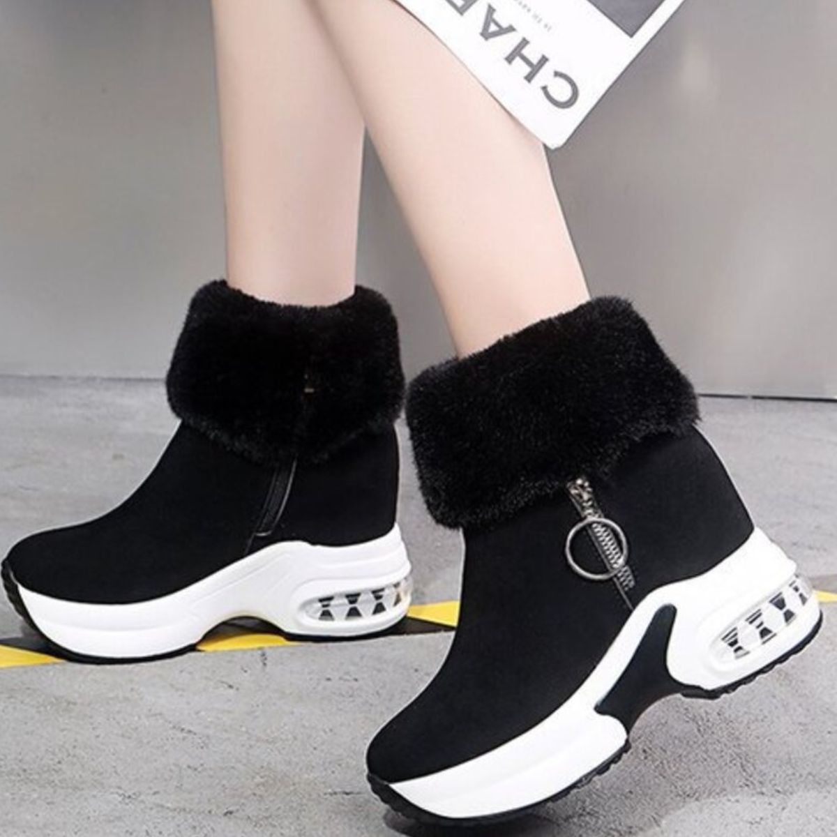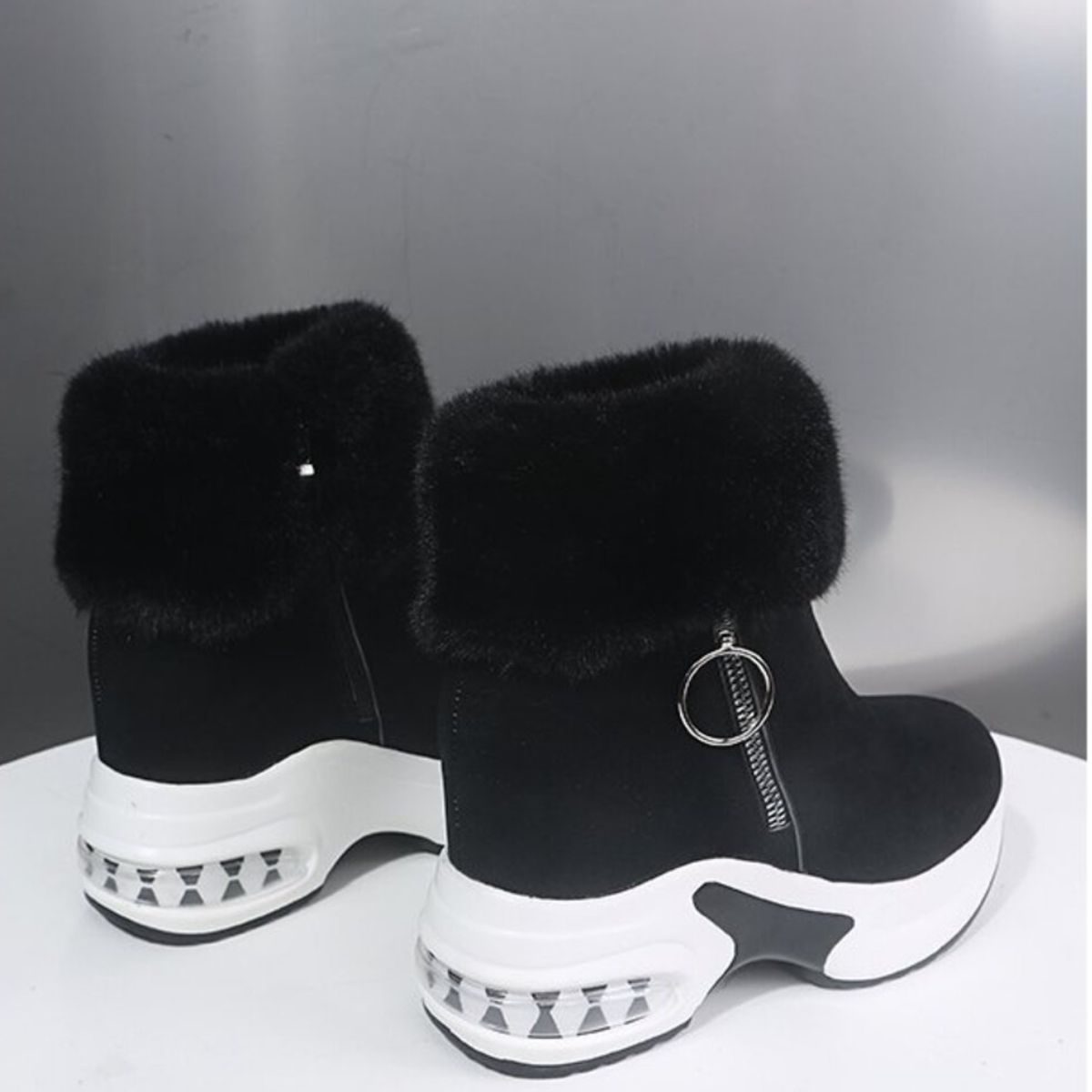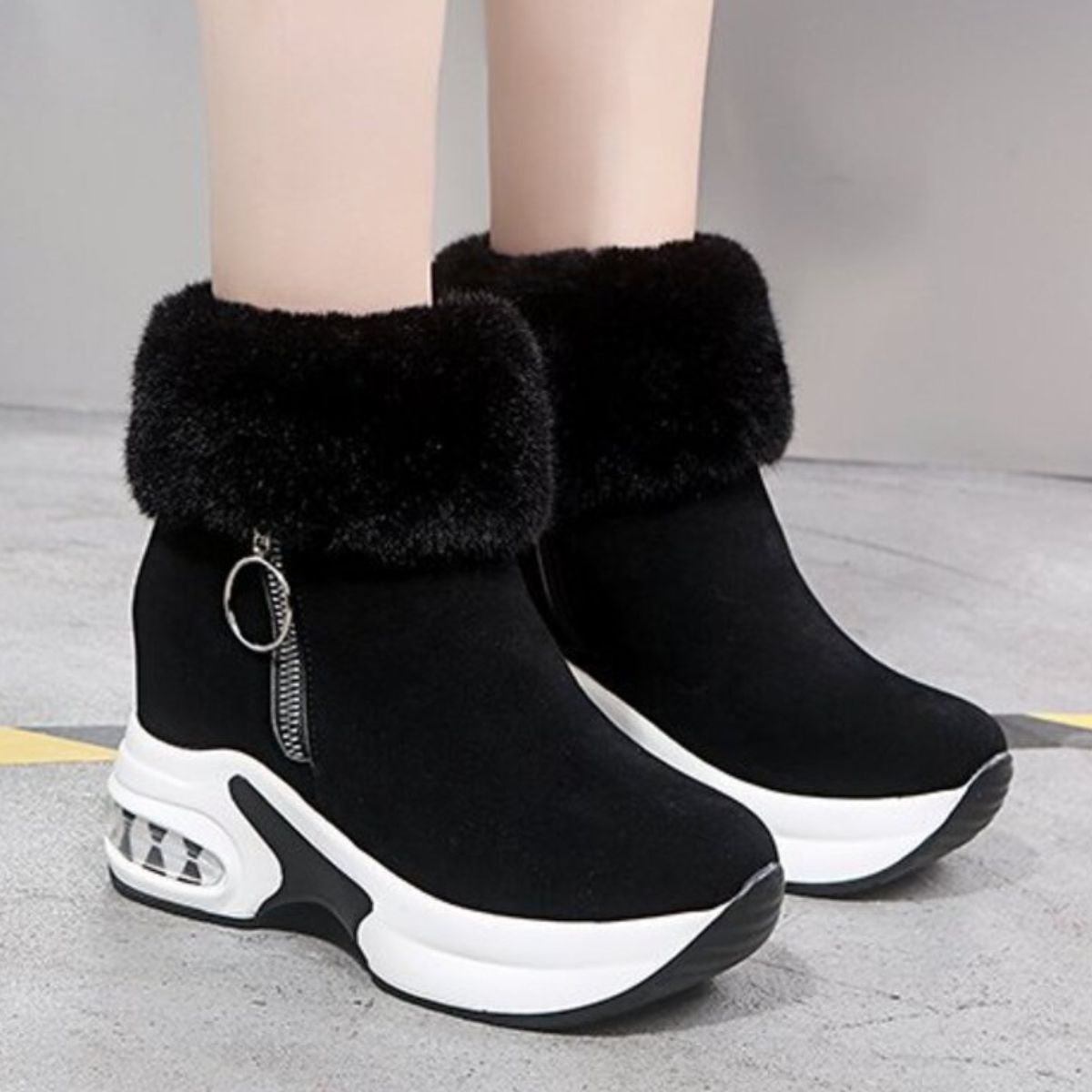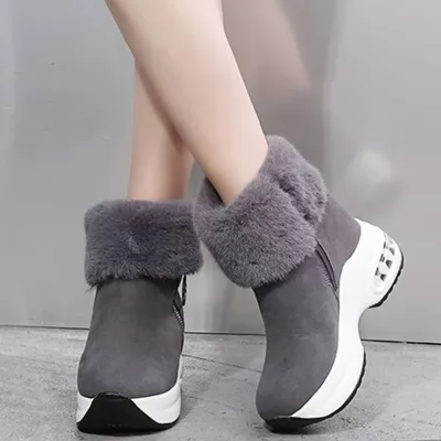 Fuzzy Side Zipper Platform Ankle Boots