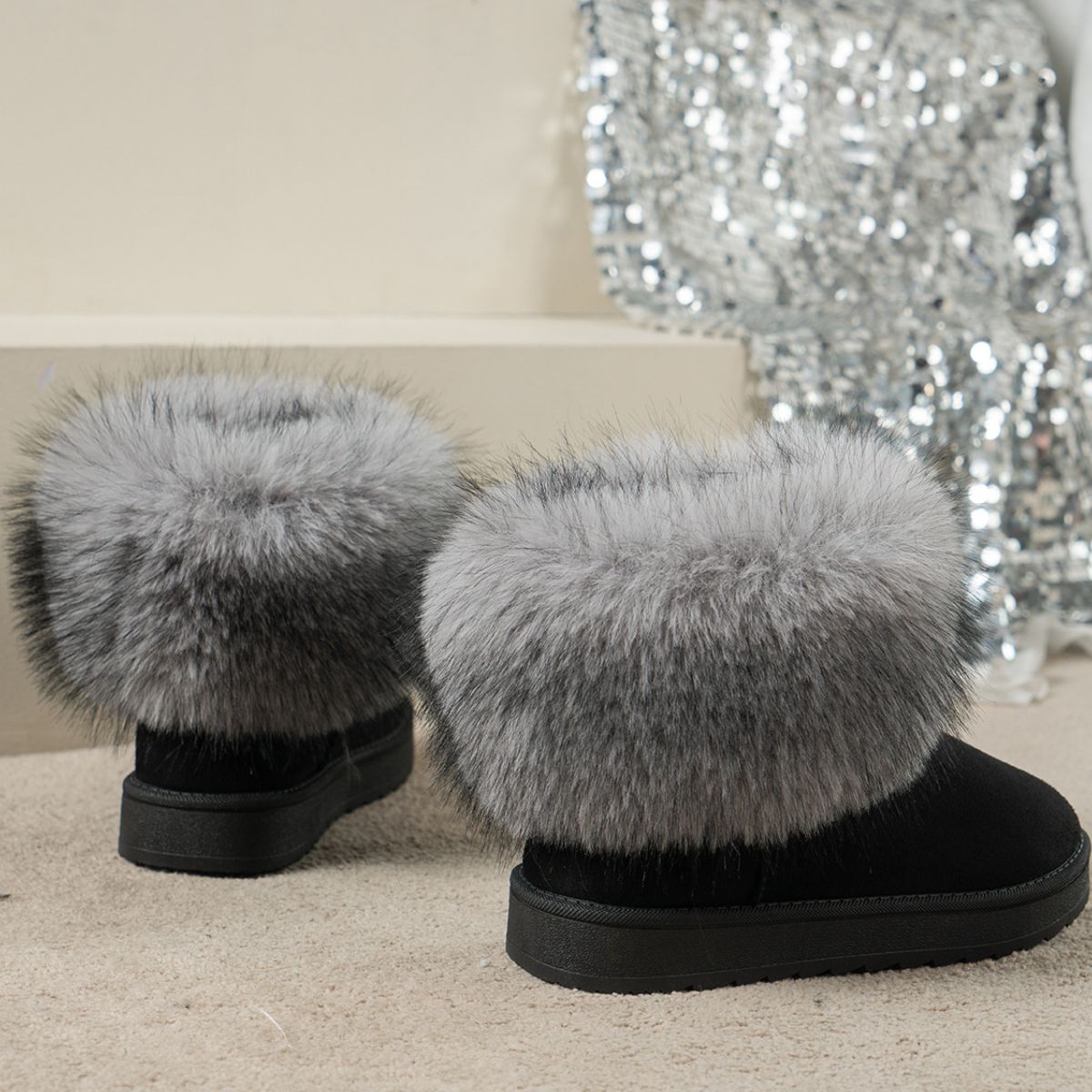 Material:Suede,Faux fur,Rubber