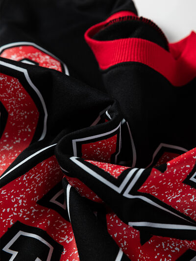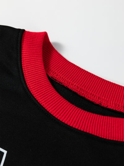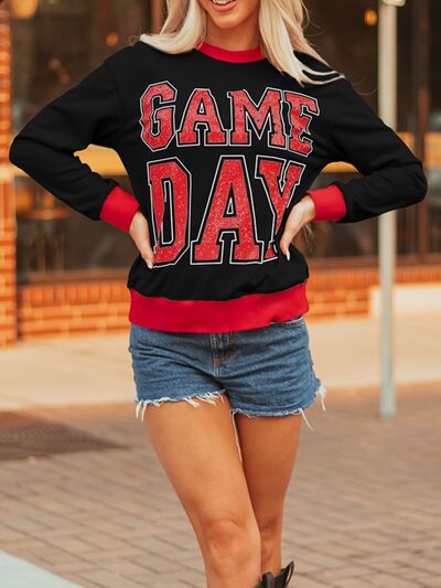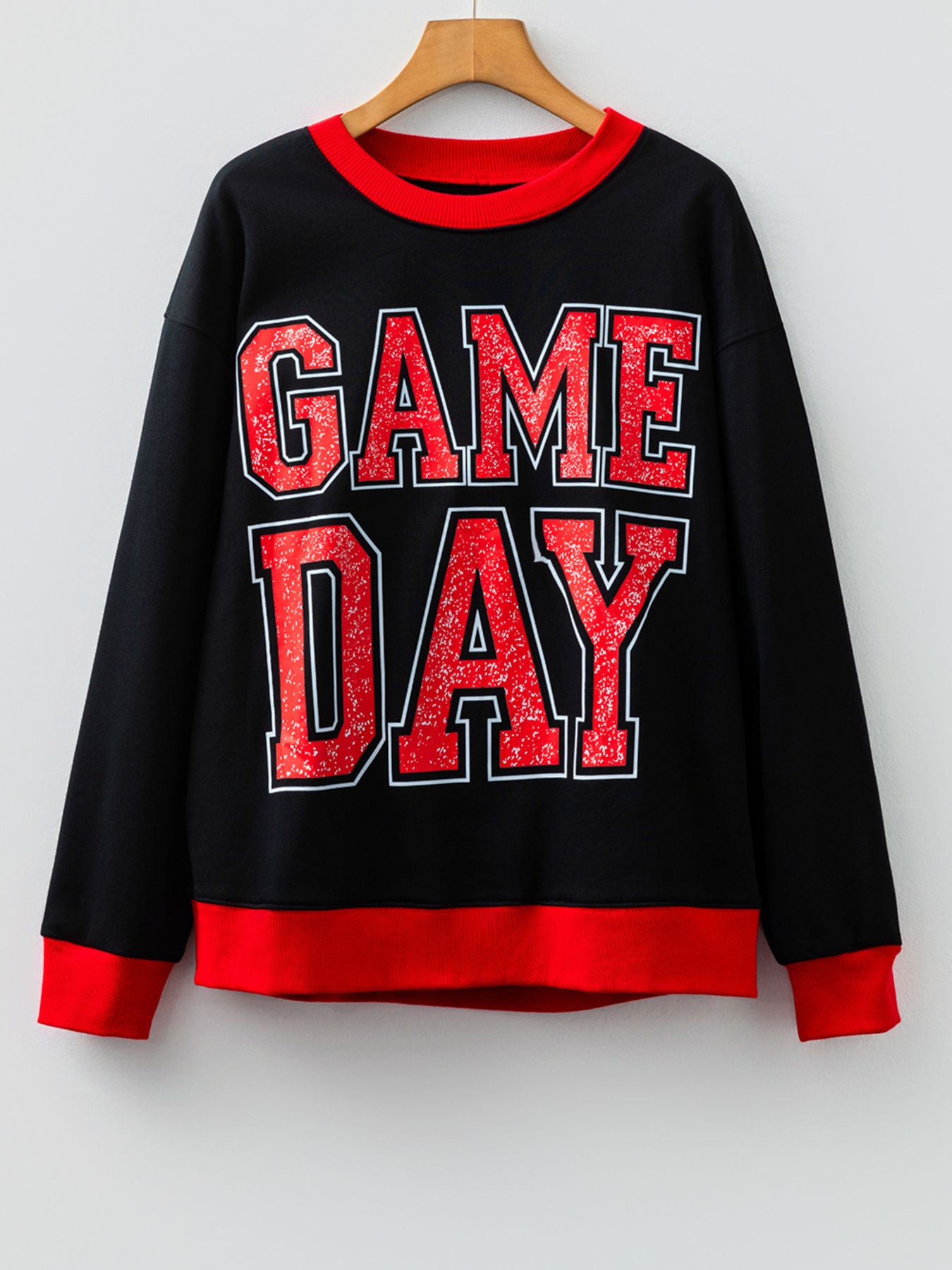 GAME DAY Letter Graphic Varsity Striped Detail Baggy Sweatshirt