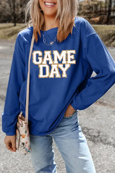 GAME DAY Round Neck Long Sleeve Sweatshirt