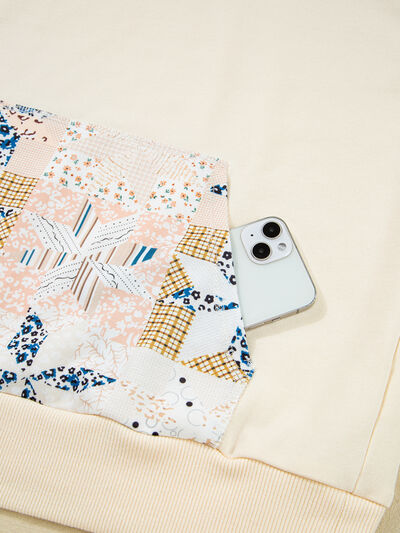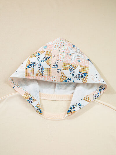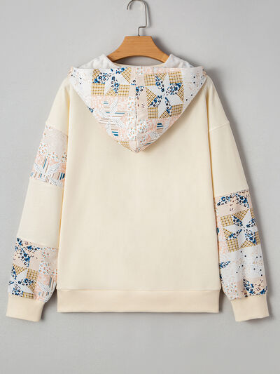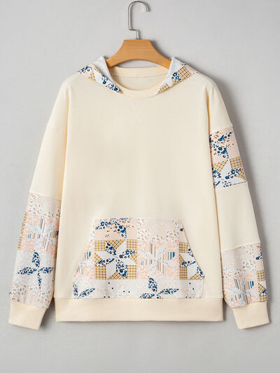 Geo Pattern Patchwork Hoodie with Kangaroo Pocket
