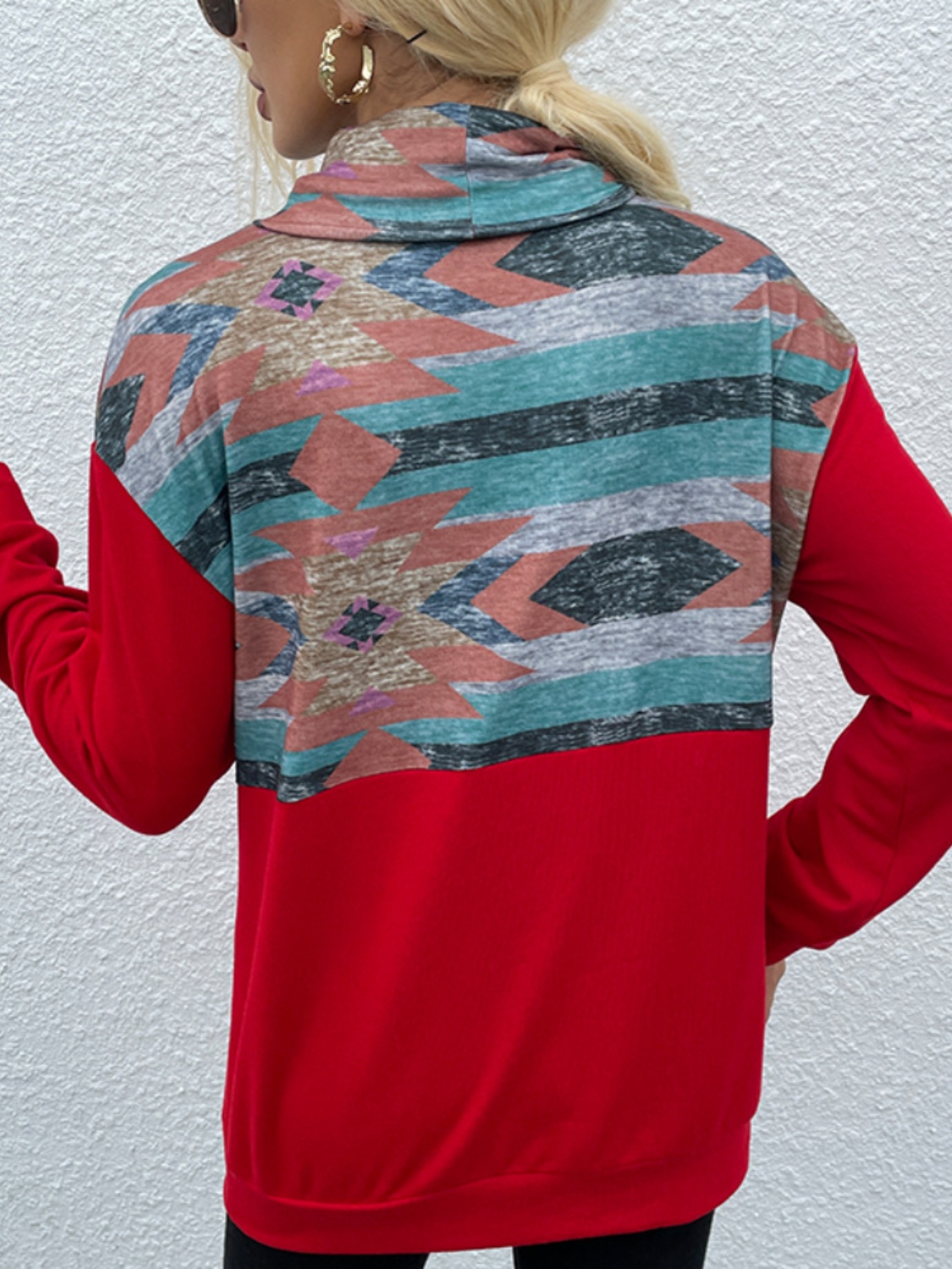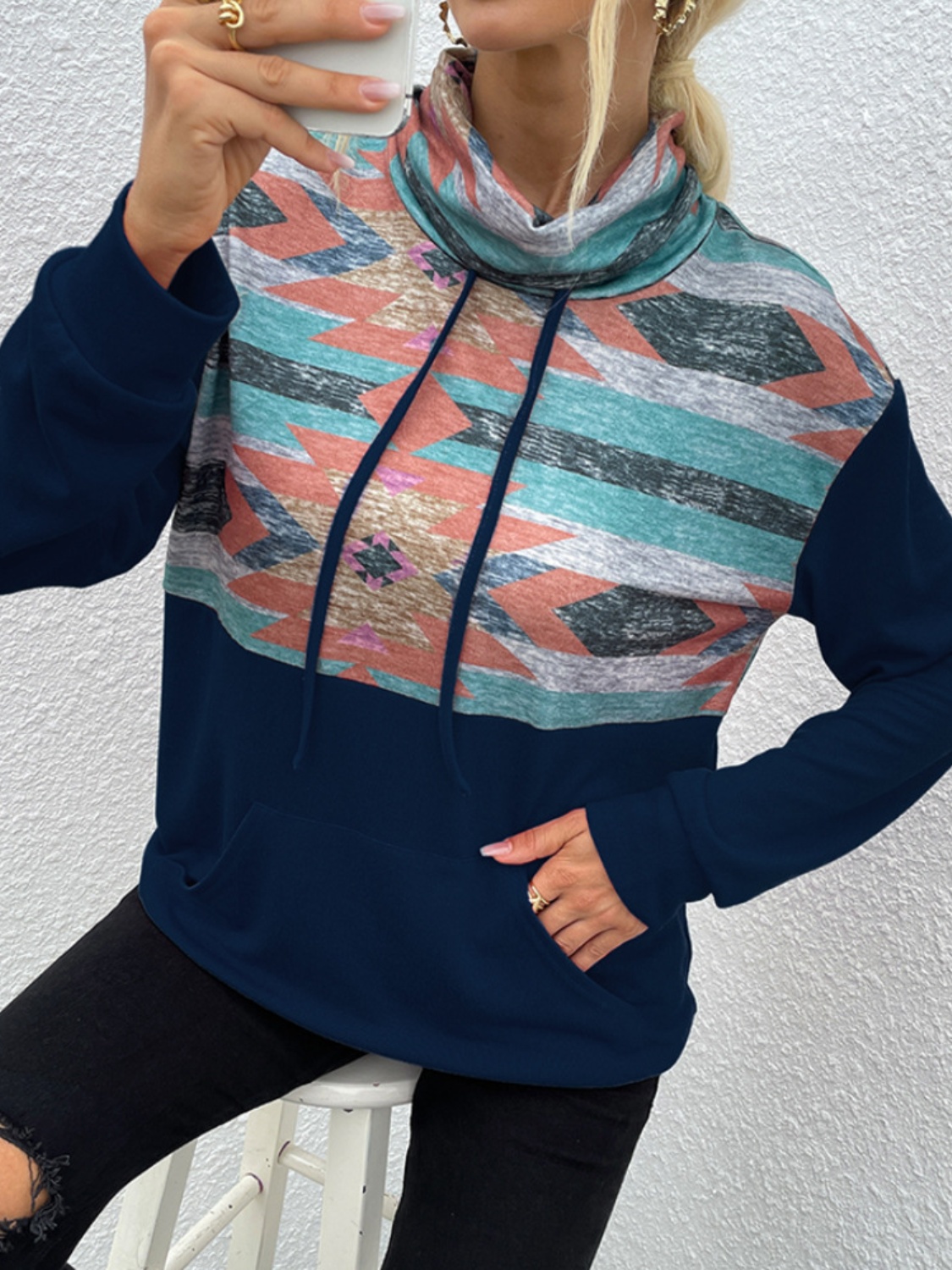 Geometric Drawstring Long-Sleeve Sweatshirt