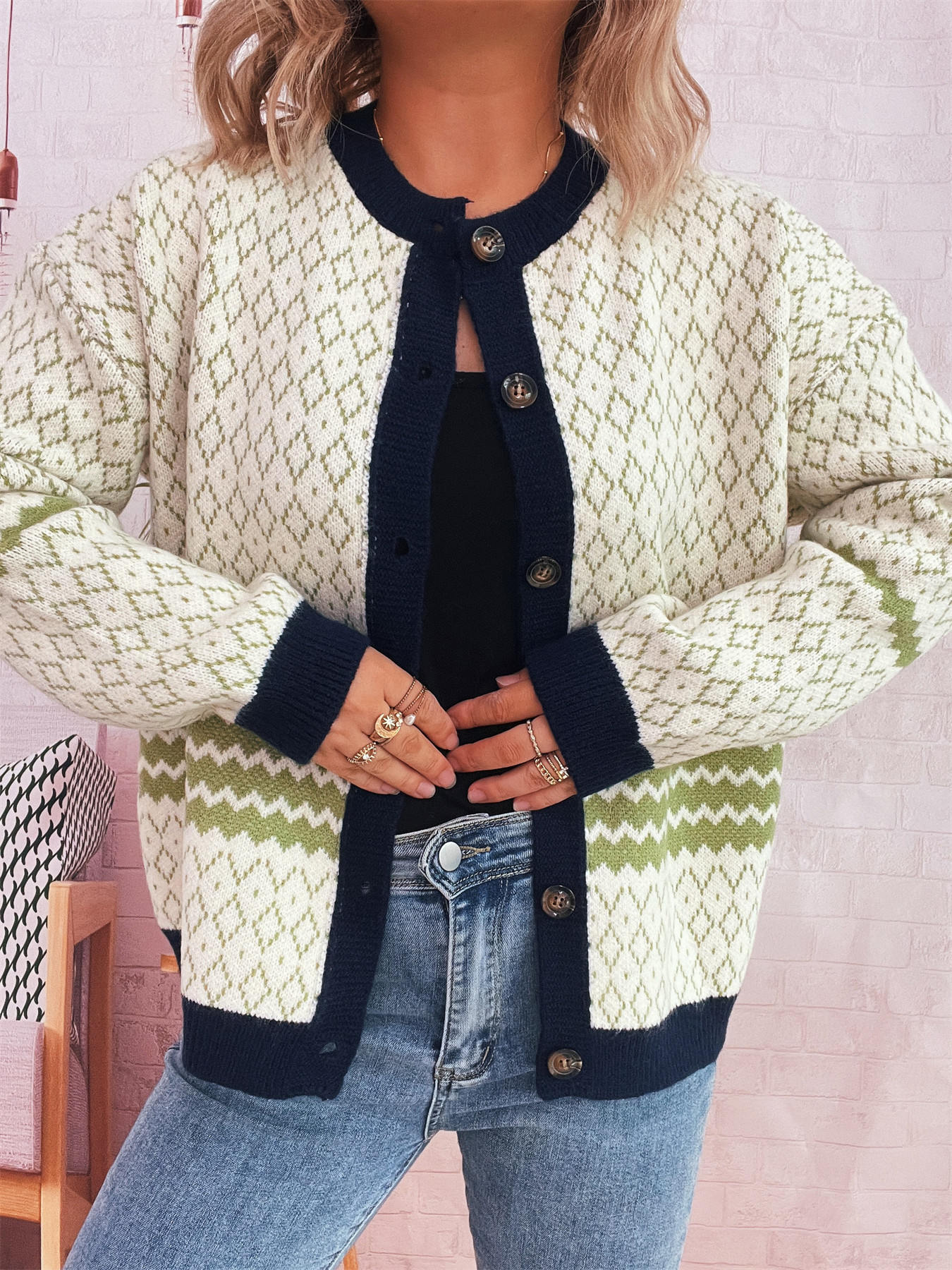 Geometric Pattern Button Up Cardigan