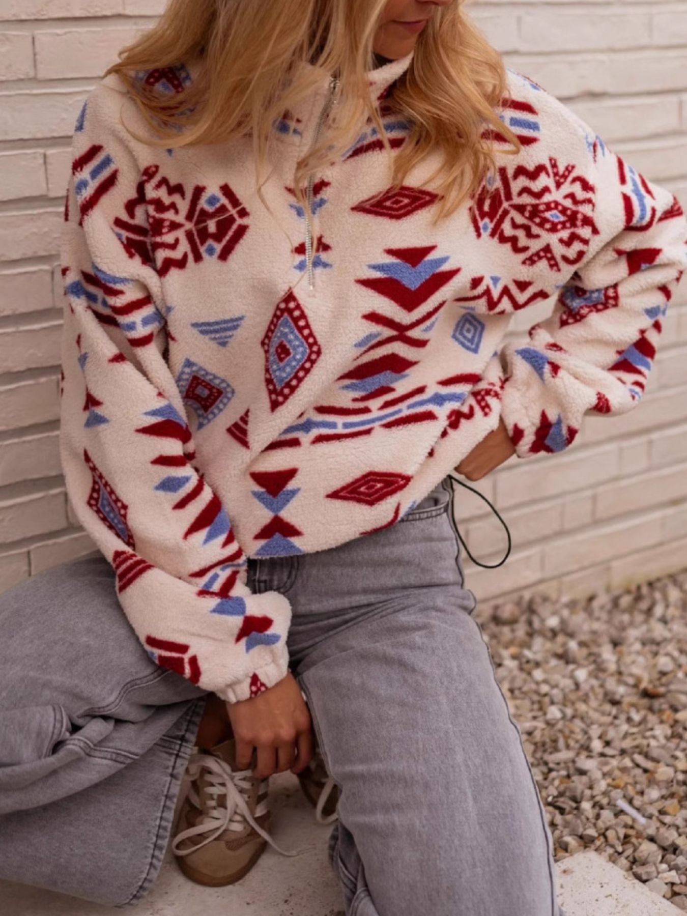 Geometric Pattern Fleece Sweatshirt