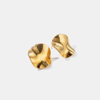 Geometric Pleated 18K Gold-Plated Stud Earrings