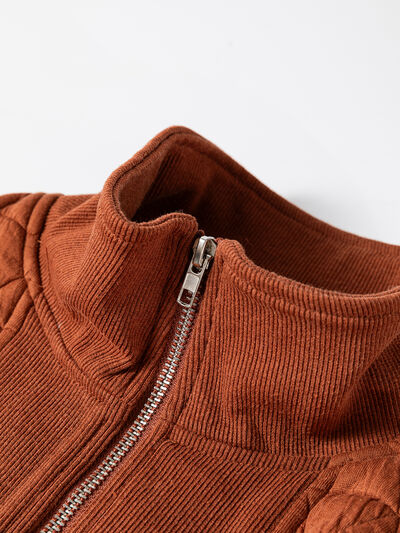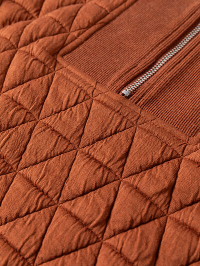 Geometric Quilted Half Zipped Loose Sweatshirt