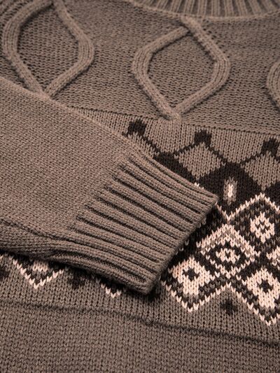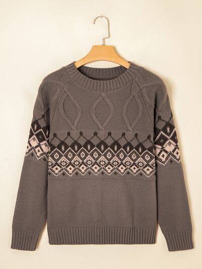 Geometric Round Neck Long Sleeve Sweater