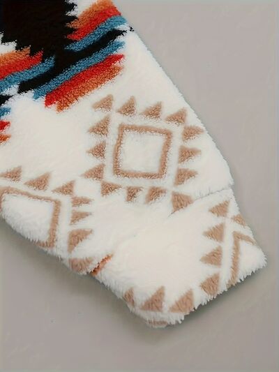 Geometric Zip Up Hooded Sherpa Jacket