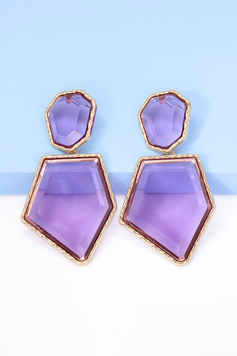 Geometrical Shape Zinc Alloy Frame Resin Dangle Earrings
