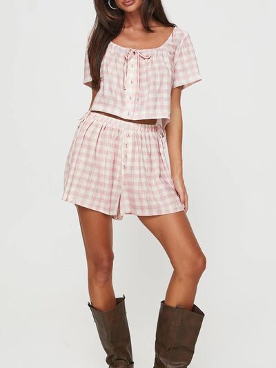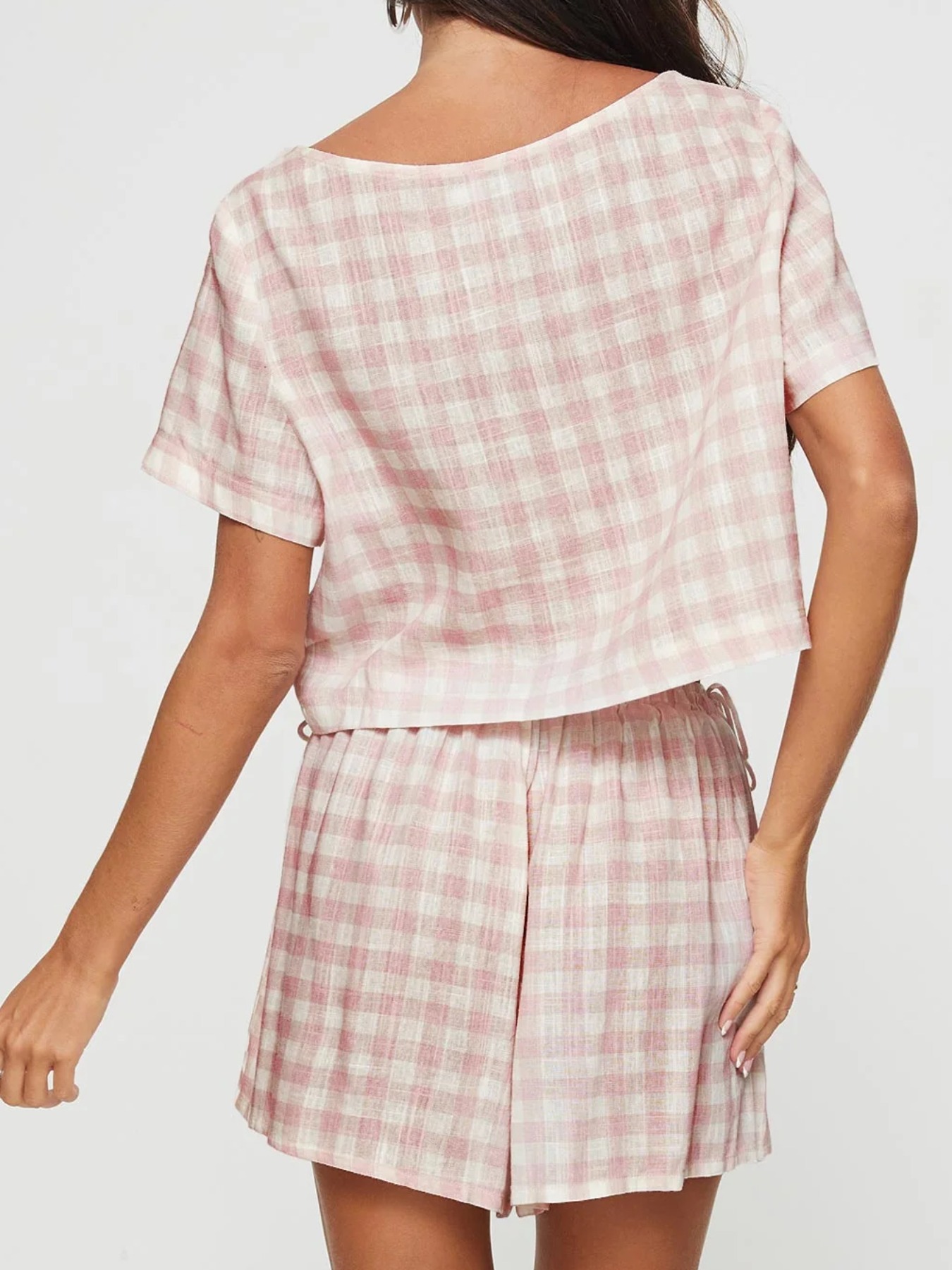 Gingham Check Top and Shorts Two-Piece Casual Set