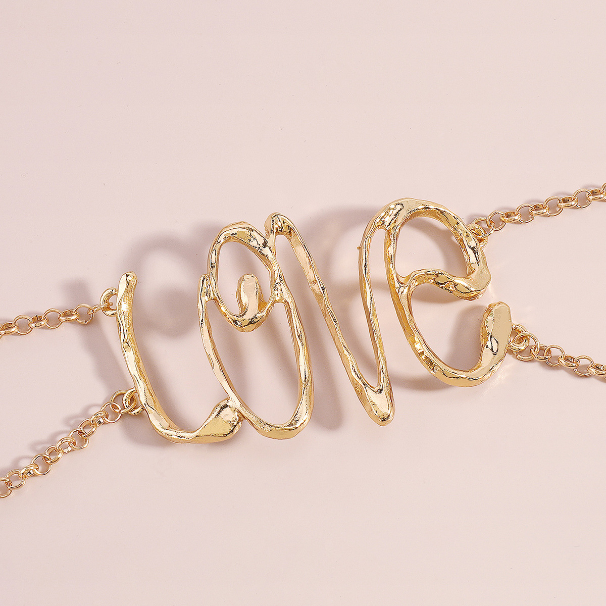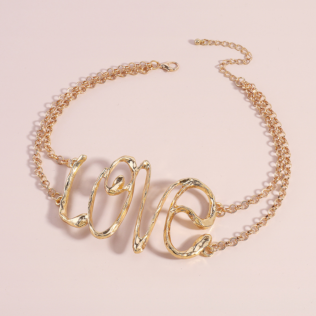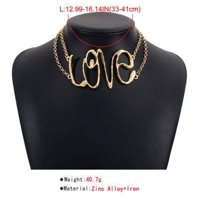 Gold Wire Love Script Statement Necklace