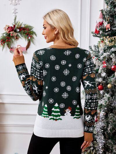 Graphic Round Neck Long Sleeve Sweater