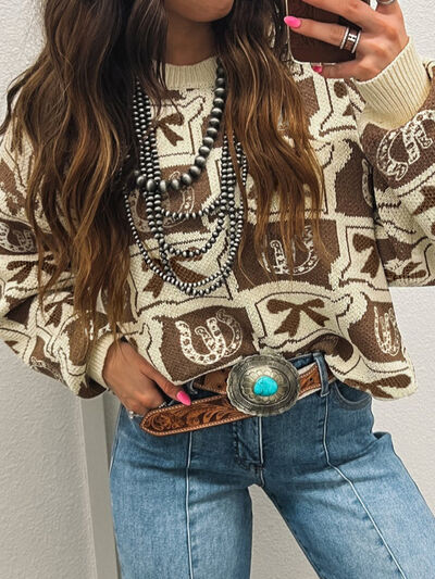 Graphic Round Neck Long Sleeve Sweater