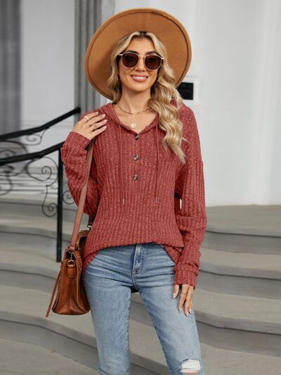 Half Button Long Sleeve Hooded Top