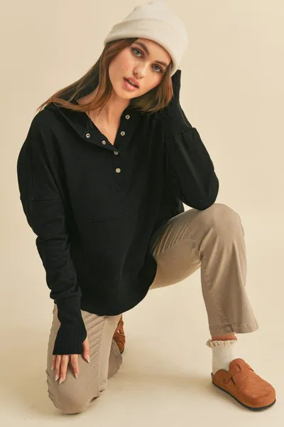 Half Snap Dropped Shoulder Hoodie