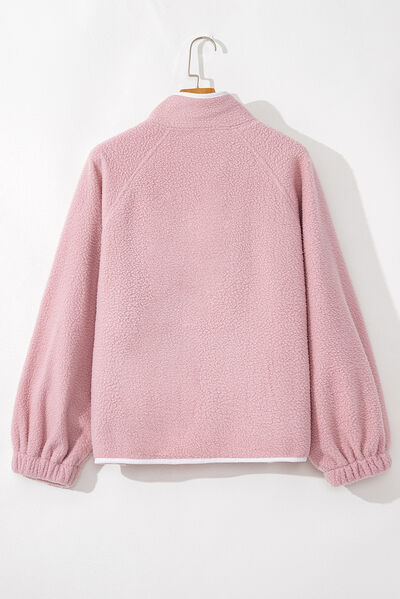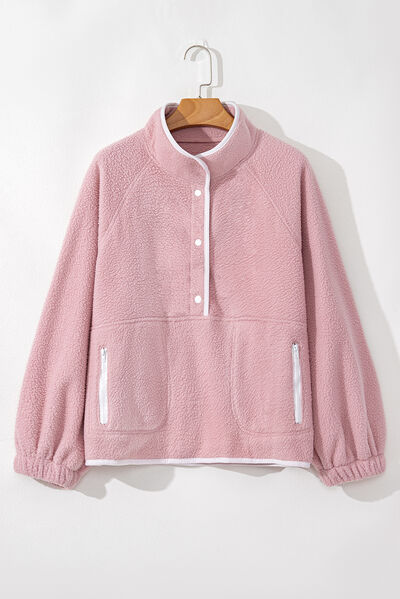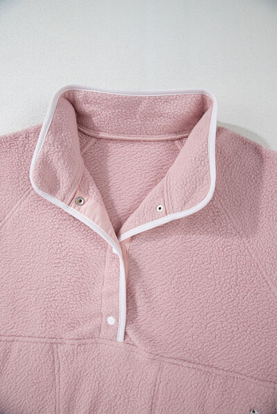 Half Snap Long Sleeve Sweatshirt with Side Slit Pockets