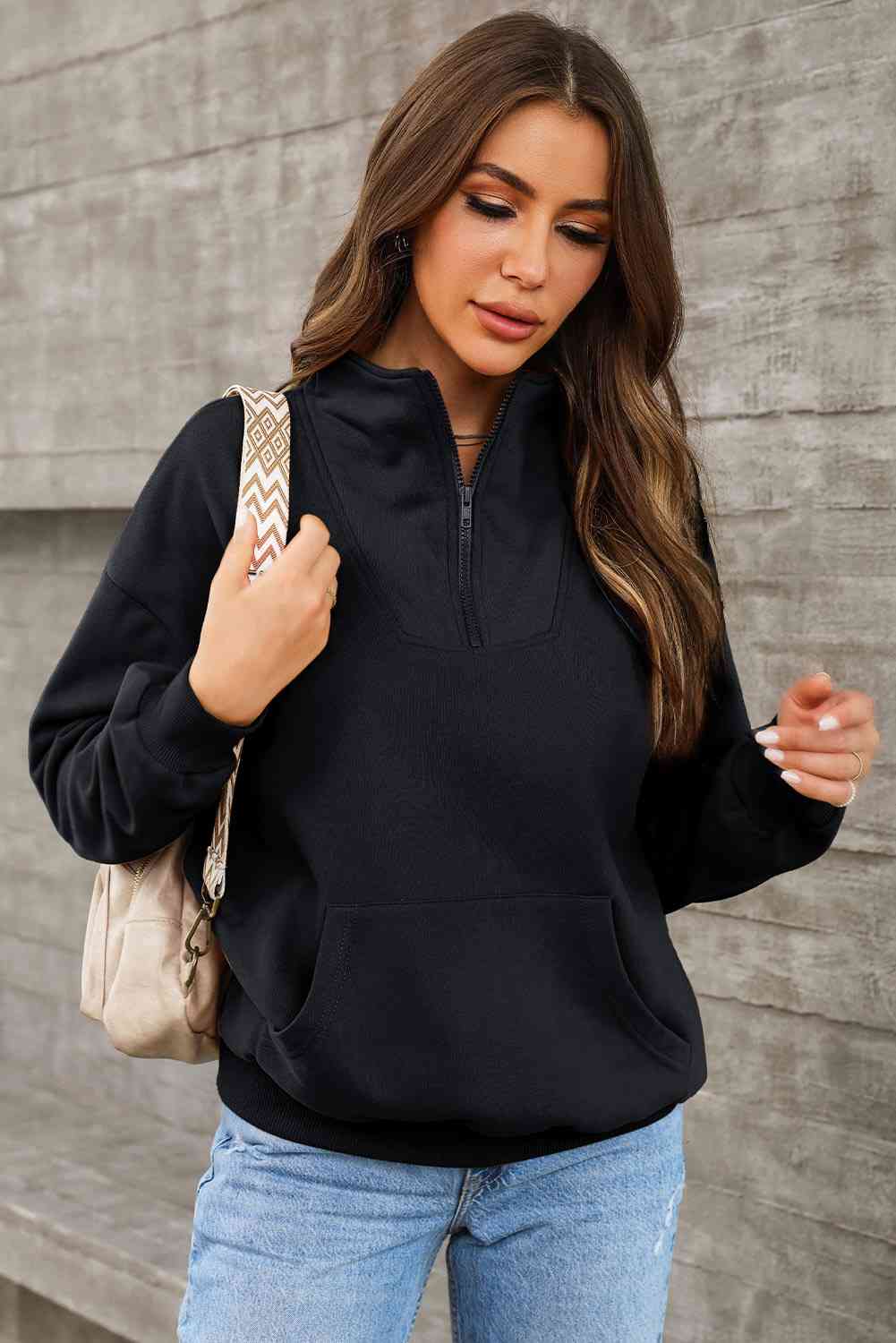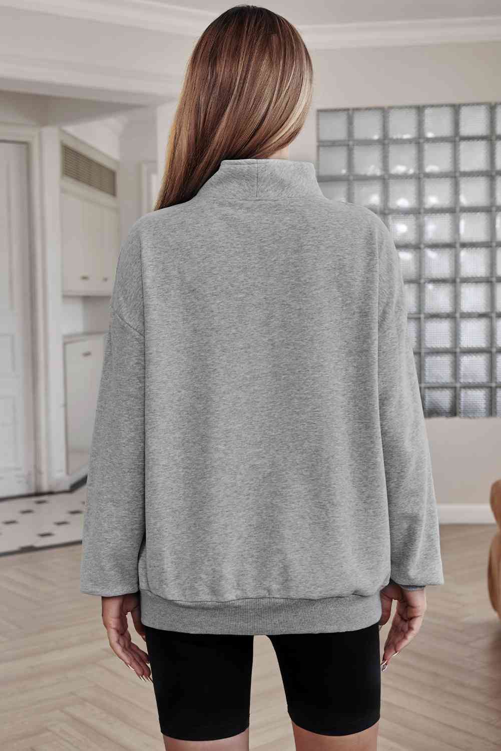 Half Zip Drop Shoulder Sweatshirt and Pocket