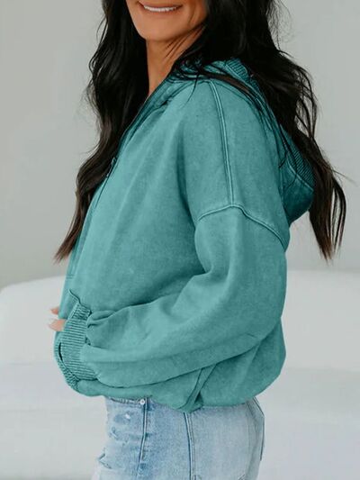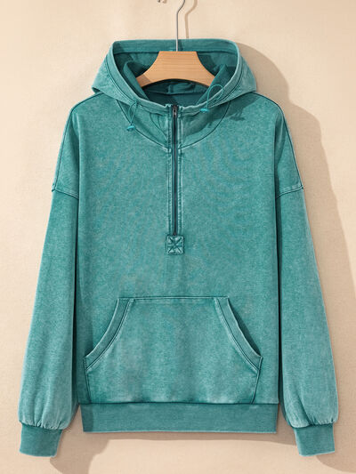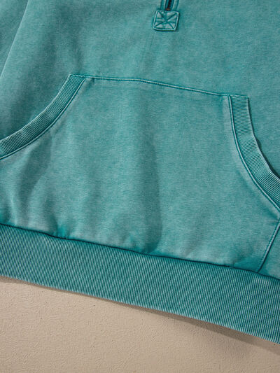 Half Zip Kangaroo Pocket Mineral Wash Baggy Hoodie