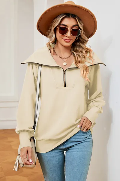 Half Zip Lantern Sleeve Sweatshirt