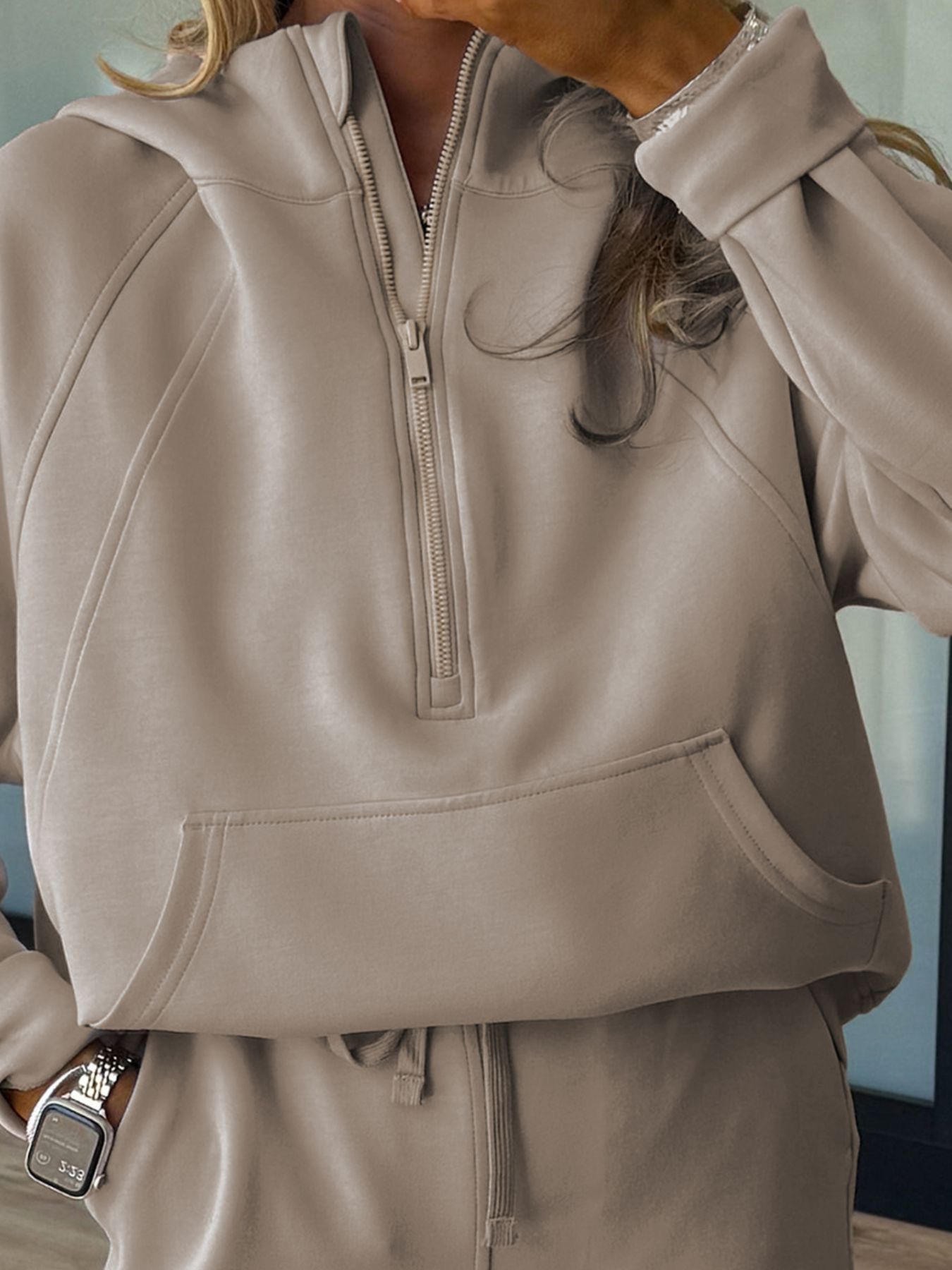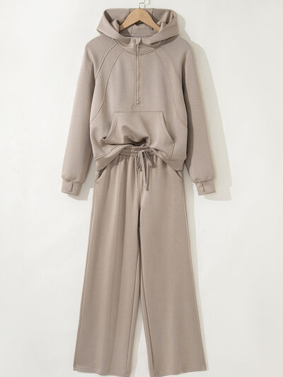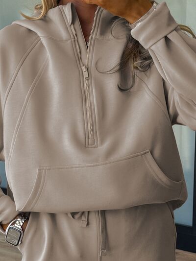 Half Zip Long Sleeve Hoodie and Pants 2pcs Outfit
